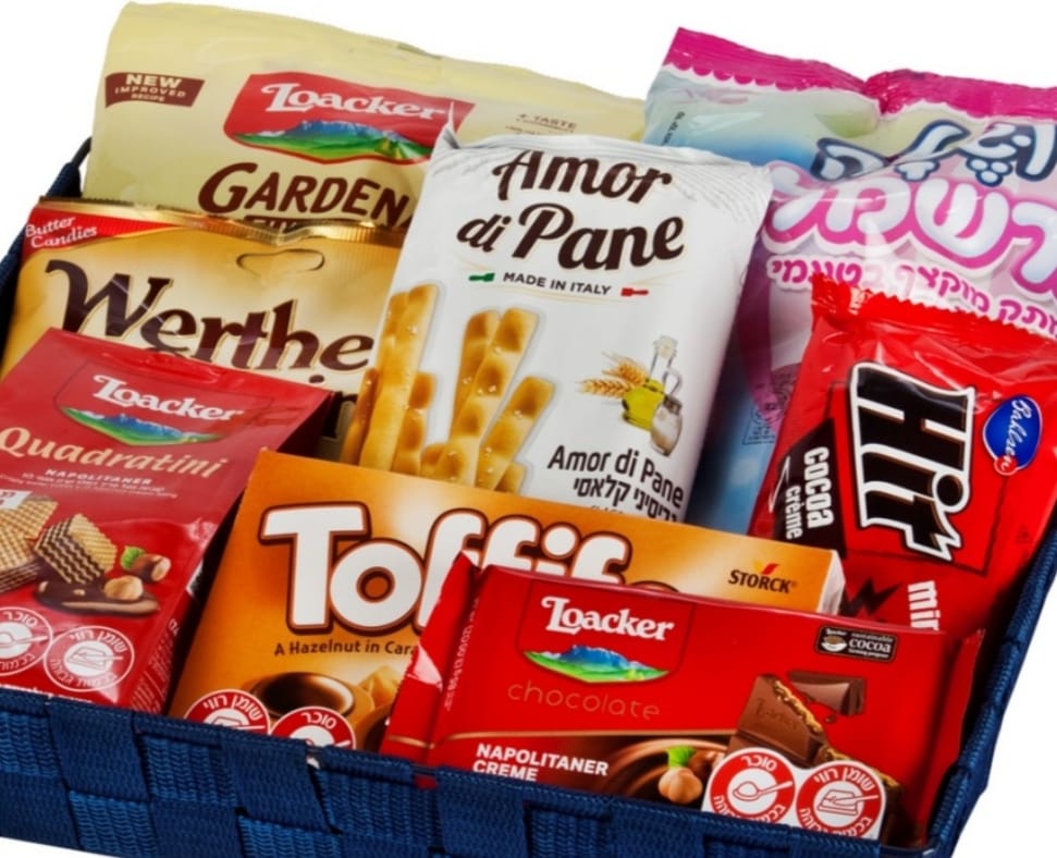 מגיע בסלסלה מעוצבת עטוף בצלופן וסרט