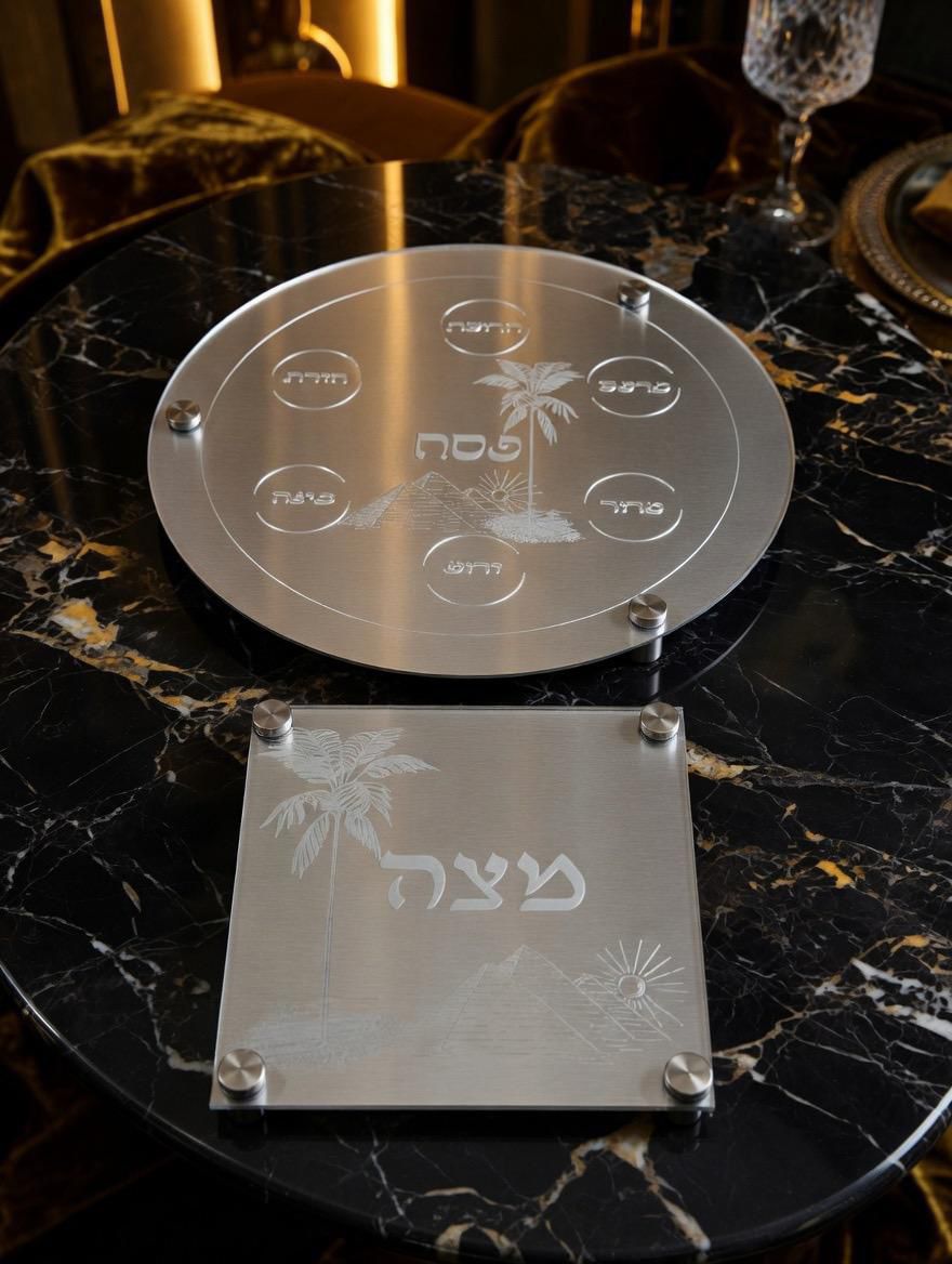סט אלגנטי ומיוחד הכולל מגש למצות וצלחת ברכות ,